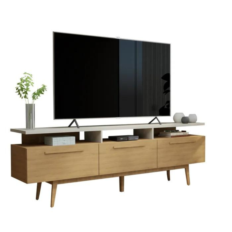 Além de servir como suporte para TV, a Bancada São Paulo proporciona espaço para objetos decorativos, eletrônicos e demais itens do seu ambiente. Seu design clean e versátil combina com diferentes estilos de decoração, tornando-a uma peça versátil para sua sala de estar.